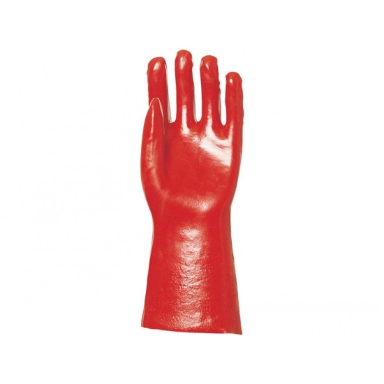 36 CM MÁRTOTT PIROS PVC ECOLINE KESZTYŰ: • pamutra mártott, nedvességálló piros PVC • 0,8 mm vastag, 36 cm hosszú védőkesztyű • Ecoline® változat • MÉRET: 10-es • CSOMAGOLÁS: 100/10 • EU szabvány: EN420, EN388: 4121