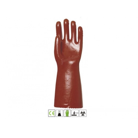 36 CM MÁRTOTT BORDÓ PVC KESZTYŰ: • pamutra mártott bordó PVC • sav-, lúg- és olajálló • mikroorganizmusok elleni v