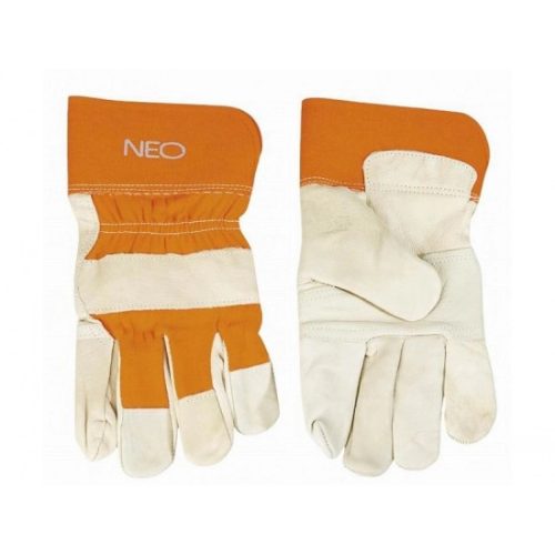 A NEO védőkesztyű a munkavégzés során védelmet biztosít a kéznek szennyeződések, karcolások, zúzódások és egyéb káros hatások ellen. Kiváló minőségű marha színbőrből készül. Igen magas a kopásállósága. A megerősített varrások és a megerősített mandzsetta biztosítja tartósságát. A fogóoldali plusz bélés megakadályozza a szerszámok kicsúszását. A CE jelölés a biztonság garanciája, bizonyítja, hogy a termék teljesít minden európai uniós követelményt. A NEO márka a professzionális igényeket is kielégíti.