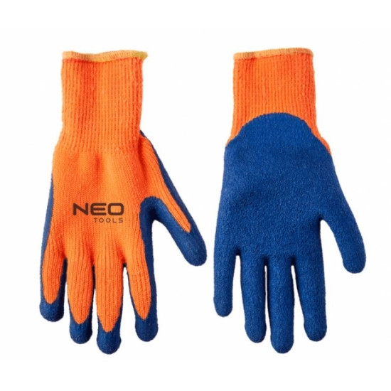 NEO bélelt akril védőkesztyű. Fogásra szolgáló része érdes latex bevonatú, ami biztos fogást és szennyeződések, horzsolások, sérülések elleni védelmet nyújt. A bélés gondoskodik a munka komfortjáról a hideg napokon. Négyfokozatú skálán besorolása: dörzsállósága: 1. átvágásállósága: 2. (ötfokozatú skála), tépésállósága: 4., átszúrásállósága: 2. Rendelkezik CE tanúsítvánnyal. A NEO márka a professzionális igényeket is kielégíti.