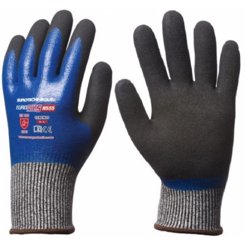 EUROCUT 5 VÁGÁSBIZTOS, VÉGIG KÉK NITRIL + SANDY CSB RÉTEG_8 EUROCUT 5 N555 TELJESEN NITRIL MÁRTOTT KESZTYŰ: • 13-as kötésű, legm