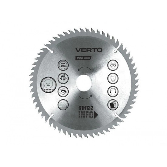 A csökkentett tárcsavastagságú VERTO vídia fűrésztárcsa nagyobb vágási sebesség elérését teszi lehetővé. Az YG8A vídiabetétes fogazás lehetővé teszi a fa és faalapú anyagok, mint pl. a rétegelt lemez, a forgácslap vagy az MDF lapok nagyoló vágását. A csomagolásban megtalálható szűkítő gyűrűk lehetővé teszik a fűrésztárcsák alkalmazását a fűrészgép típusok többségéhez. A VERTO márka ajánlata elektromos kéziszerszámokat és tartozékokat tartalmaz az ezermesterek számára.