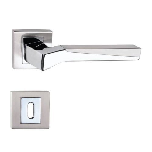 A króm-szatén nikkel alapanyagú, négyzetrozettás BB záras kilincs letisztult formavilága a modern otthonok és helyiségek tökéletes kiegészítője. Normálkulcsos beltéri ajtó kilincs.