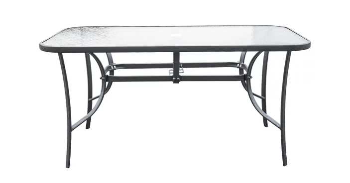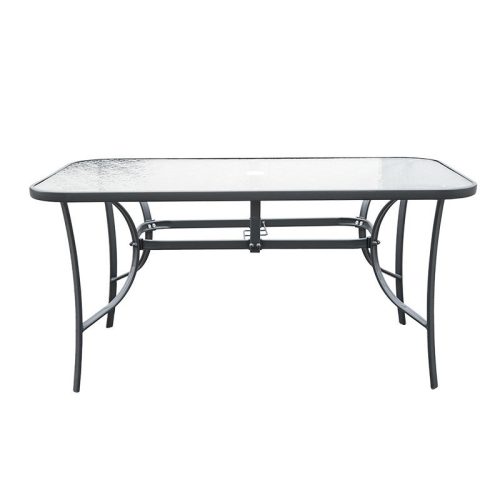 Acél kerti asztal téglalap alakú üveg asztallappal