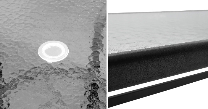 Az asztal könnyen tisztán tartható. A nagy munkalap felülete, 5 mm vastag edzett üveg napernyő furattal és acélszerkezettel kielégíti a legigényesebb ügyfelek elvárásait is.
