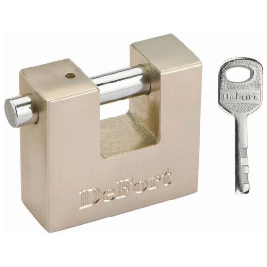 DEFORT lakat (kat sz. 90U332). Az 70 mm széles test tökéletes védelmet nyújt a lakatnak megbontása ellen. Három kulccsal a készletben.