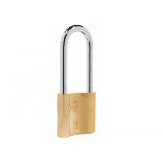 Elzett 2048 Tutius lakat. Sárgaréz kivitel. Méretek: 35, 45 és 55 mm. Mérettől függően 2 vagy 3 db kulccsal. Csapos rendszerű, 5 zárócsappal, 45-ös méretben hosszított kengyel