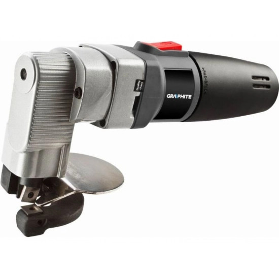 Az 500 W teljesítményű professzionális GRAPHITE síklemezvágó gép (kat. sz. 59G402) rendeltetése max. 2,5 mm vastag acéllemezek és max. 3 mm vastag alumínium lemezek vágása egyenes vonal és ív mentén – az olló veszteségmentesen vág. A szerszámra a nagy szilárdság jellemző, ezt szolgálja a hajtómű fémháza is. A vágást négyperemes kések végzik, melyek elforgathatók. Az ollók max. vágási ciklusszáma percenként 1 800. A lemezvágó fel van szerelve forgács ellen védő borítással, valamint a véletlen elindítást kiküszöbölő reteszeléssel. Az indítókapcsoló reteszelésével folyamatos üzemmódba kapcsolható a gép. A szerszám hálózati csatlakozókábele 5 m-es. A szerszámhoz mellékelt tartozékok: hézagmérő, szerelőkulcsok és praktikus hordtáska. A CE tanúsítvány bizonyítja az európai szabványoknak való megfelelést.
