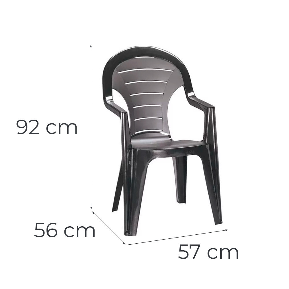 A székek nagy sűrűségű polipropilénből készülnek, mely nem csak erős, hanem rugalmas is – így kényelmesen támasztják meg a hátat. Az anyag nem fakul ki a nap hatására, és az eső sem tesz kárt benne. A könnyű, egymásba rakható kialakítás miatt ideális akár kisebb helyekre is.
