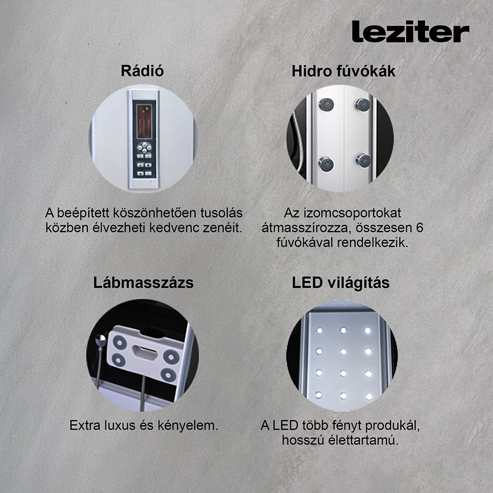 Leziter GM6410 Lia hidromasszázs zuhanykabin jobbos beépítési oldallal telepítés zuhanytálcára