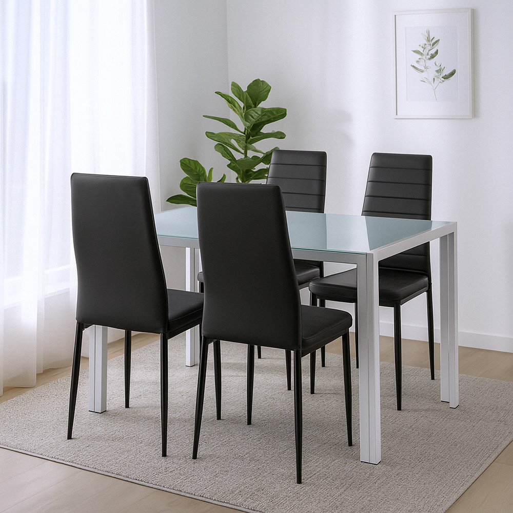 Liana 4+1 étkezőgarnitúra – Modern stílus fekete székekkel és edzett üvegasztallal