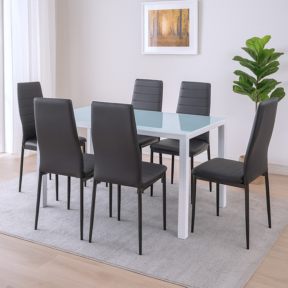 Liana 6+1 étkezőgarnitúra – Modern stílus fekete székekkel és edzett üvegasztallal