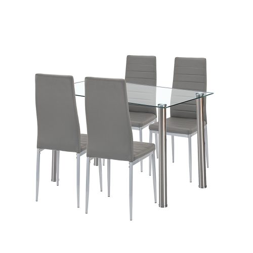 Mateo 4+1 étkezőgarnitúra – Letisztult modernség szürke székekkel és edzett üvegasztallal