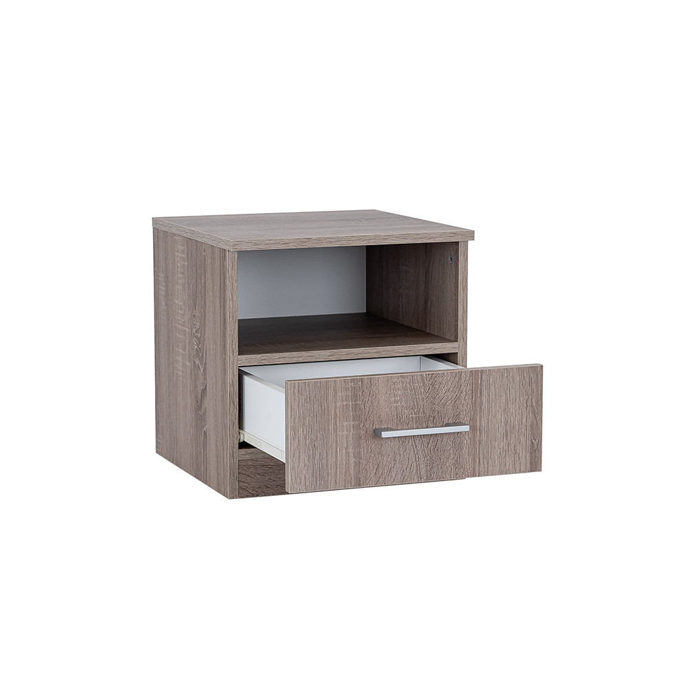 Az éjjeliszekrény minőségi bútorlapból készült. A sima felületeknek köszönhetően az éjjeliszekrény könnyen tisztán tartható. A por és egyéb szennyeződések egyszerűen eltávolíthatók.