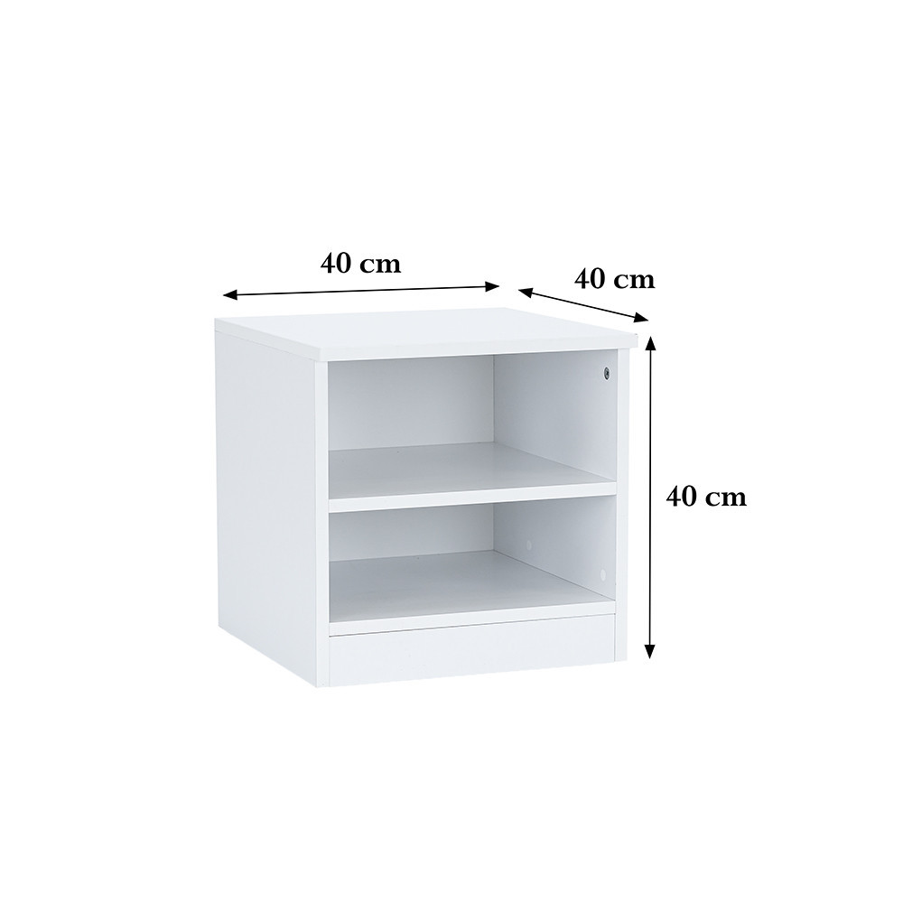 Az éjjeliszekrény 40x40x40 cm-es mérete tökéletesen illeszkedik a kisebb hálószobákba is, anélkül, hogy túl sok helyet foglalna. Az éjjeliszekrény 2 polccal lett kialakítva, ahol a fontosabb, gyakran használt tárgyakat tarthatod, könyveket, szemüveget vagy telefont.