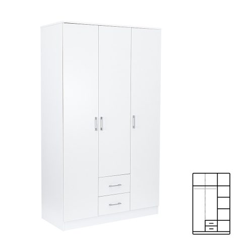 Miami gardróbszekrény 120x205 cm fehér-fehér
