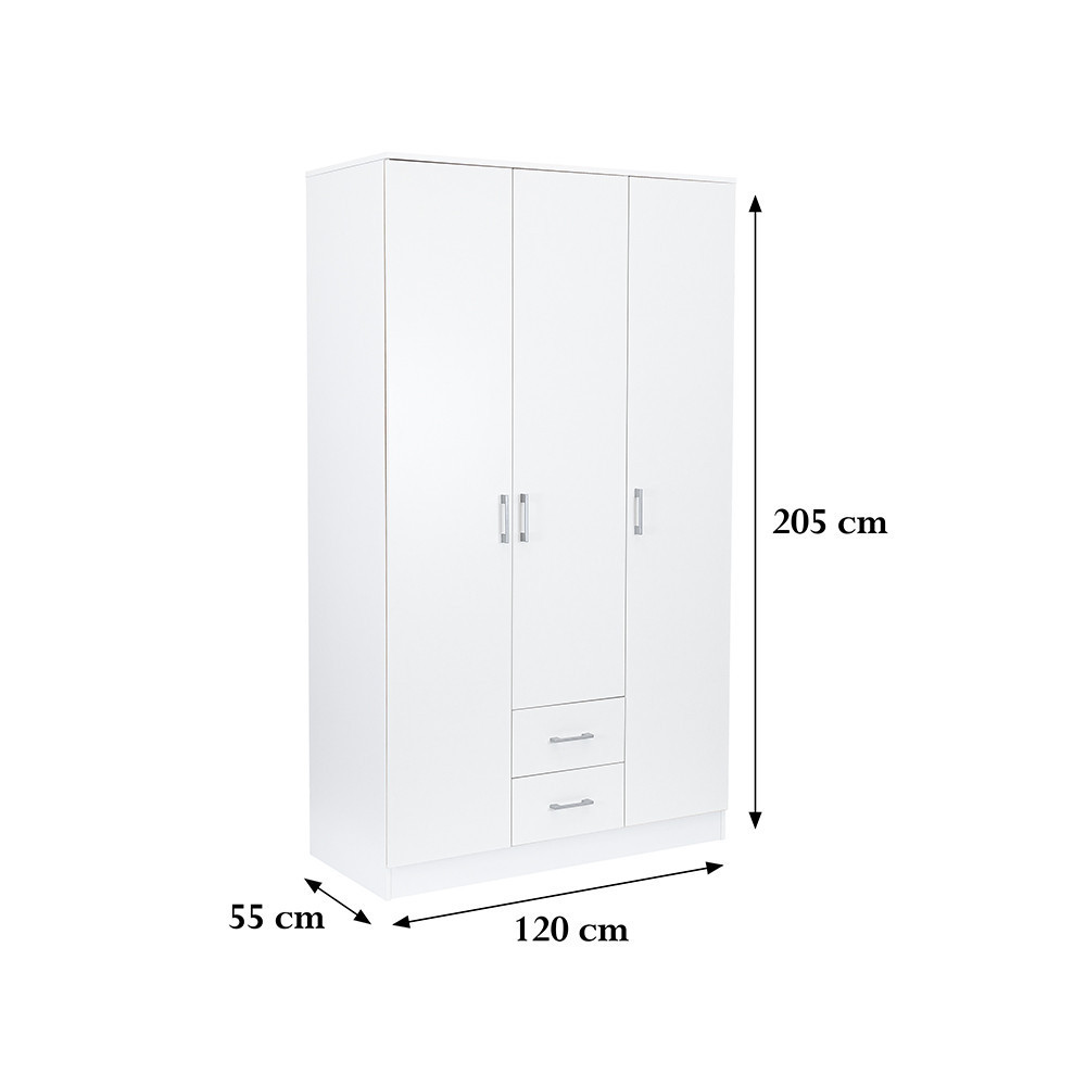 Az elegáns fehér front és a fahatású fehér korpusz ötvözete tökéletes harmóniát teremt a nappaliba vagy a hálószobába egyaránt. A 205 cm magas, 120 cm széles és 55 cm mély gardróbszekrény ideális választás mindenki számára, aki szeretné rendszerezni ruháit és kiegészítőit.