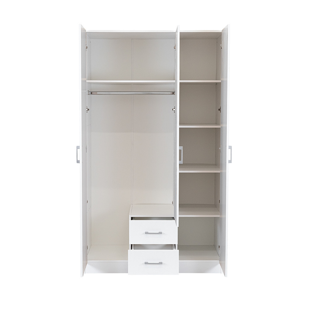 A fiókok tökéletesek a kisebb ruhaneműk és egyéb tárgyak rendszerezett tárolására, míg a vállfás ruhák számára kialakított rész, beleértve a krómozott vállfa tartó rudat, gondoskodik a ruhák átlátható és gyűrődésmentes elhelyezéséről.