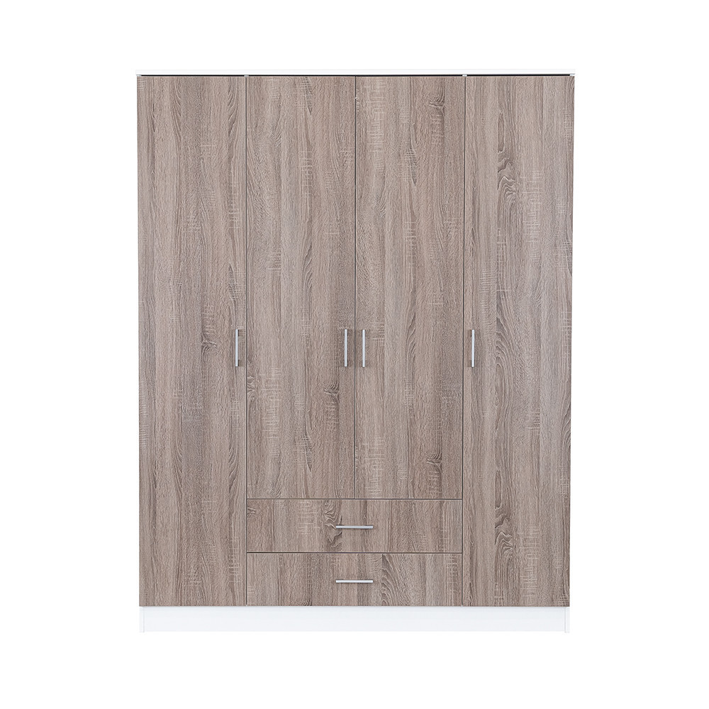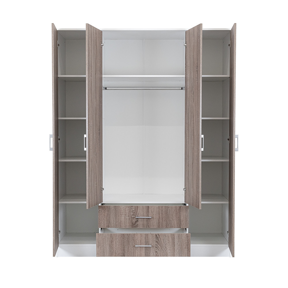 Az elegáns yorki tölgy front és a fahatású fehér korpusz ötvözete tökéletes harmóniát teremt a nappaliba vagy a hálószobába egyaránt. A 205 cm magas, 160 cm széles és 55 cm mély gardróbszekrény ideális választás mindenki számára, aki szeretné rendszerezni ruháit és kiegészítőit.