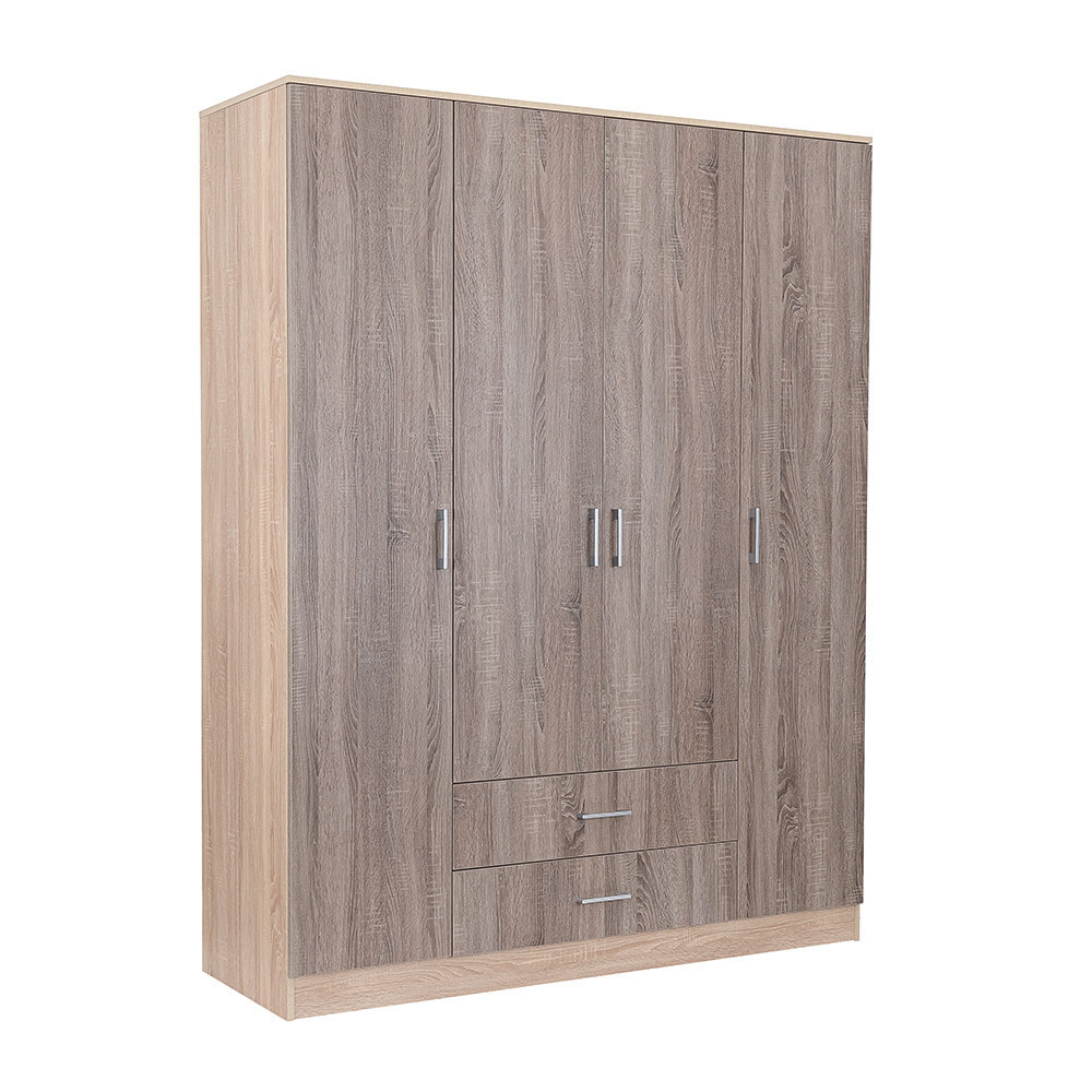 Az elegáns yorki tölgy front és a fahatású sonoma tölgy korpusz ötvözete tökéletes harmóniát teremt a nappaliba vagy a hálószobába egyaránt. A 205 cm magas, 160 cm széles és 55 cm mély gardróbszekrény ideális választás mindenki számára, aki szeretné rendszerezni ruháit és kiegészítőit.