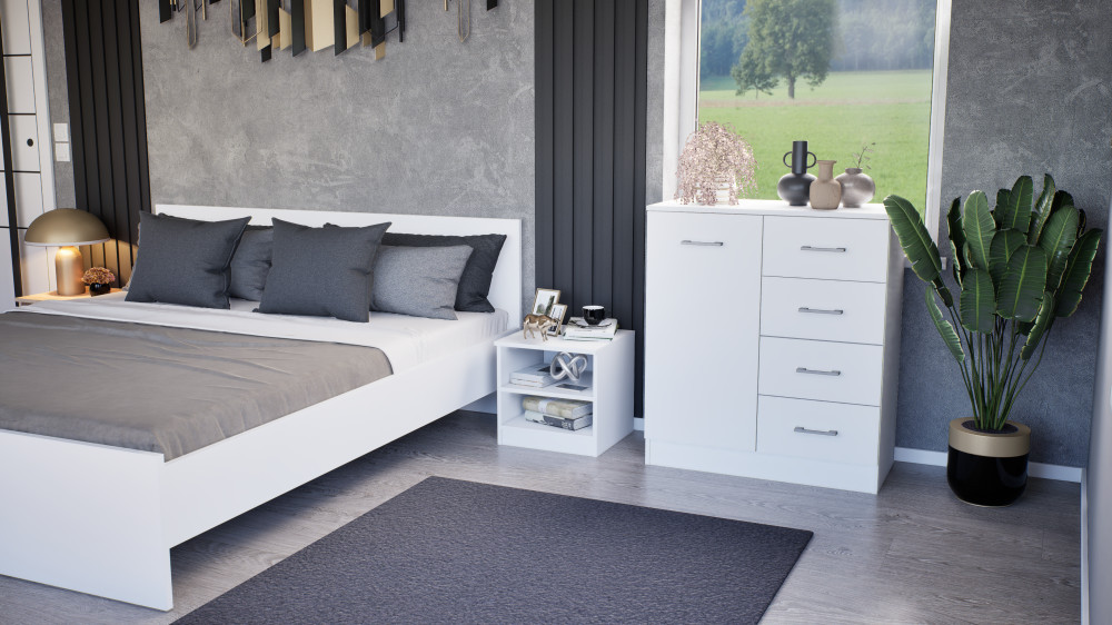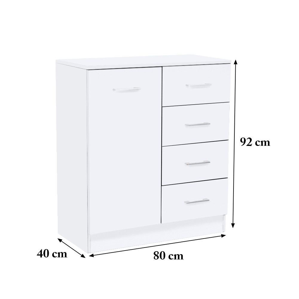 Miami komód 1ajtós 4 fiókos 80x92 cm fehér-fehér