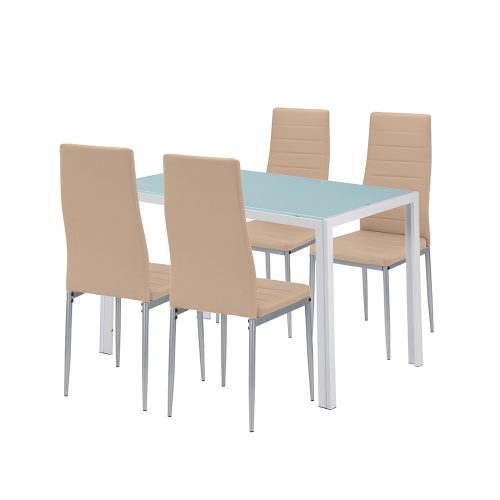 A Midland garnitúra modern, bézs-szürke szék és fehér üvegasztal színkombinációja szinte bármilyen enteriőrbe könnyedén illeszthető. A kompakt méretnek köszönhetően kisebb étkezőkben is elfér.