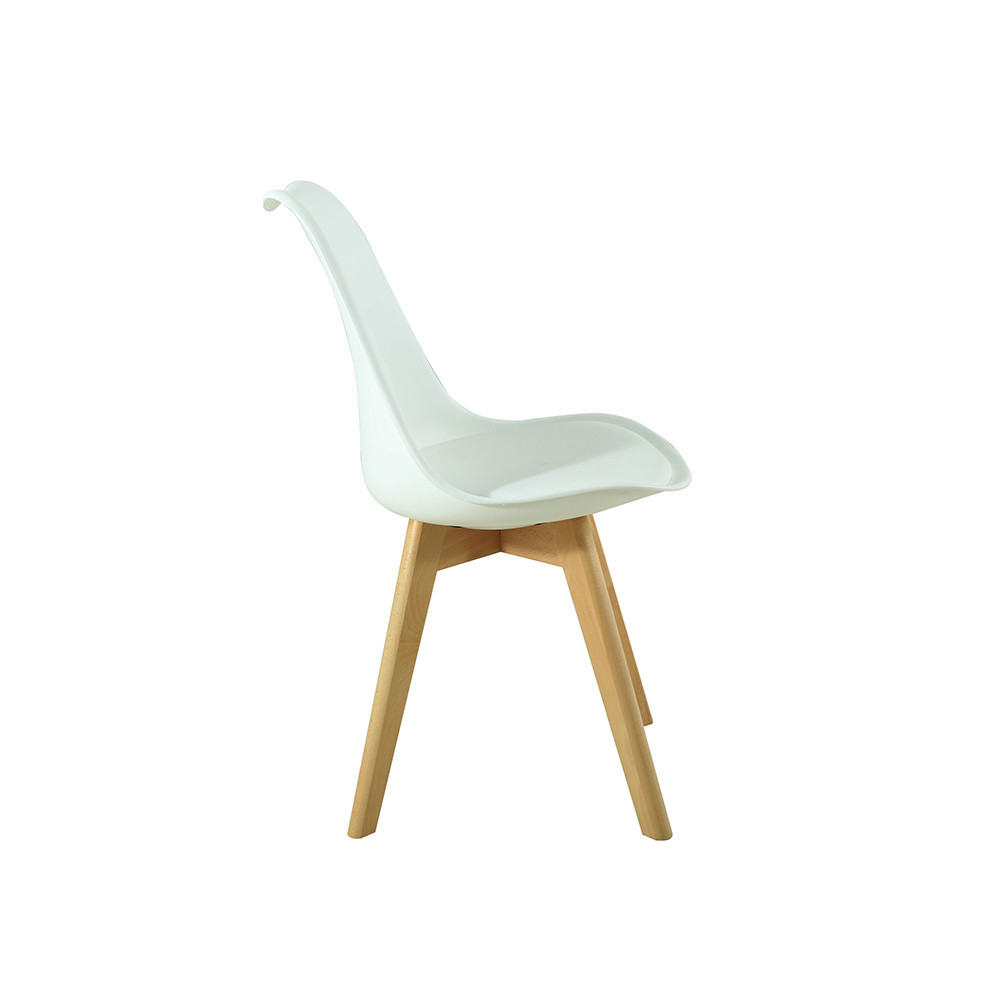 • Elegáns design: fehér színű, polipropilén ülőfelület és fehér PVC párnázat, természetes bükkfa színű lábakkal. Modern és elegáns megjelenés.