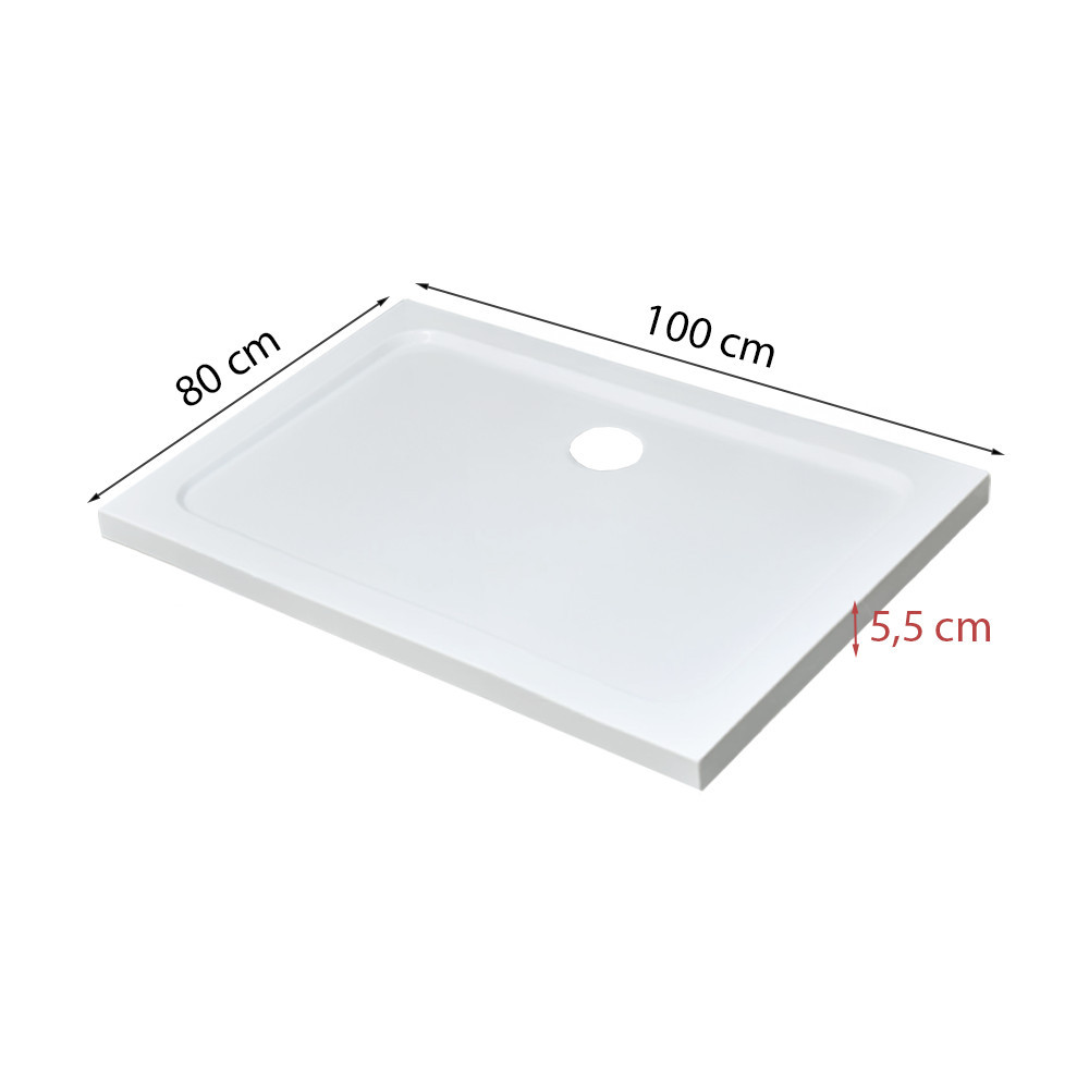 Modena Slim aszimmetrikus szögletes akril zuhanytálca, 80x100x5,5 cm-es méretben