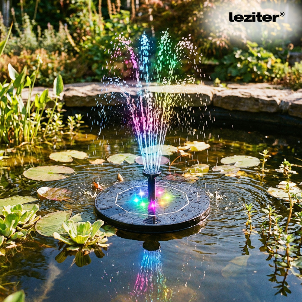 A Leziter napelemes szökőkút LED világítással energiatakarékos és dekoratív megoldást kínál kerti tavakhoz vagy madáritatókhoz, amely napelemes működésével és színes LED világításával nappal és este is látványos vízjátékot biztosít kültéri környezetben.