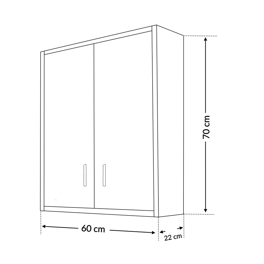 A fürdőszoba szekrény kevés helyet foglal viszont rendelkezik egy két ajtós szekrénnyel ahol két polc található így kényelmesen elférnek a fürdőszobai pipere eszközök. Kevés helyigénye miatt kisebb fürdőszobák berendezésére is alkalmas, például panel lakásokban. A termék magas minőségű bútorlapból készül és színben passzoló élzárókkal van ellátva. A fürdőszoba bútor felfüggesztett kivitelben kapható.
