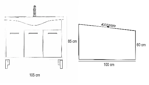 • Alsó rész mosdó nélkül : 80x102x33 cm (mosdóval : 82x105x48 cm )
