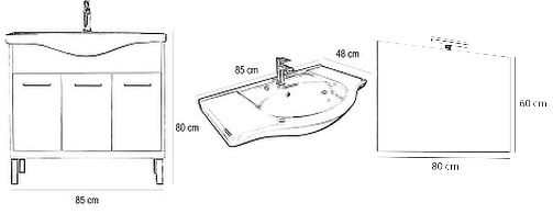 • Alsó rész mosdó nélkül : 80x85x33 cm (mosdóval : 82x85x48 cm )