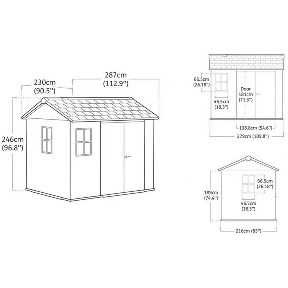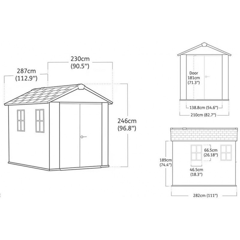 A Newton Plus 9 x 7,5 kerti ház tökéletes megoldás, ha biztonságos, rendezett és tartós tárolóhelyre van szükség. Külső méretei: 230 cm (szélesség) x 287 cm (hosszúság) x 246 cm (magasság). A tágas belső tér elegendő helyet biztosít a kerti és műhelyeszközöknek, sportfelszereléseknek és grillkellékeknek. Az EvoTech anyagnak köszönhetően időjárásálló és karbantartásmentes, így nem kell aggódnod a festés vagy impregnálás miatt.