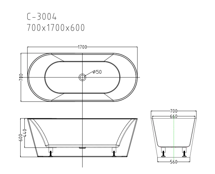 Noa szabadon álló fürdőkád 170x75x56 cm