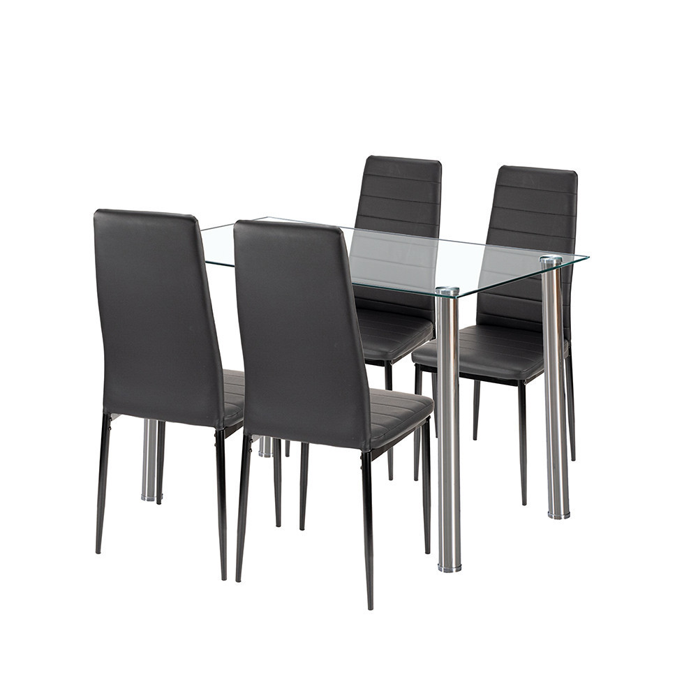 Nolen 4+1 étkezőgarnitúra – Modern elegancia fekete székekkel és edzett üvegasztallal