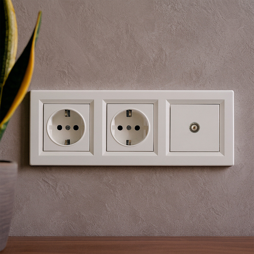 A Nova III kettő földelt csatlakozóaljzat TV csatlakozóval egy praktikus, helytakarékos megoldás, amely egyetlen szerelvényben biztosítja két elektromos készülék biztonságos áramellátását és egy televízió vagy beltéri egység stabil jelcsatlakoztatását. A földelt aljzatok 16 A névleges áramerősséggel és 250 V AC feszültséggel működnek, alkalmasak háztartási és irodai eszközök, valamint nagyobb teljesítményű fogyasztók, például konyhai gépek, számítástechnikai berendezések számára. A koaxiális RF TV aljzat megbízható, zavarmentes jelátvitelt biztosít, ezáltal kiváló kép- és hangminőséget nyújt.