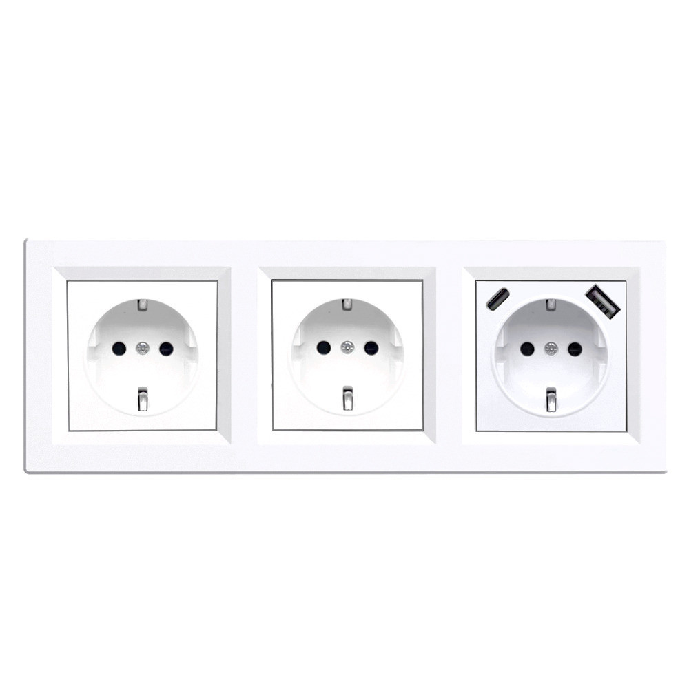 A Nova III kettő földelt csatlakozóaljzat USB csatlakozóval praktikus megoldás, amely egyesíti a hagyományos 230 V-os áramellátást és a közvetlen USB töltés lehetőségét. A földelt dugaljak 16 A névleges áramerősséggel és 250 V AC feszültséggel működnek, így alkalmasak háztartási és irodai eszközök biztonságos csatlakoztatására, beleértve a nagyobb teljesítményű fogyasztókat is. A beépített USB-A és USB-C portok összesen legfeljebb 2A kimeneti áramerősséget biztosítanak, így ideálisak kisebb fogyasztású eszközök – például okostelefonok, okosórák, fülhallgatók – töltésére külön adapter használata nélkül.