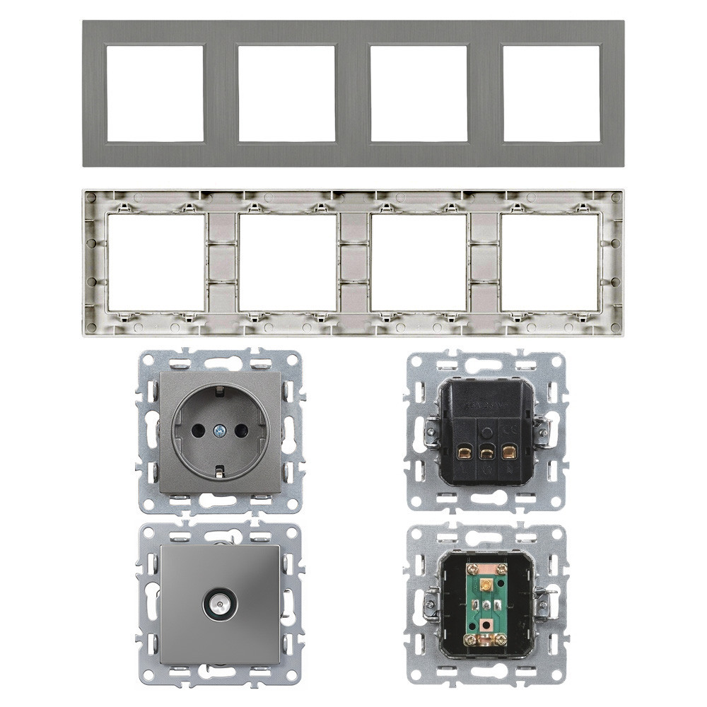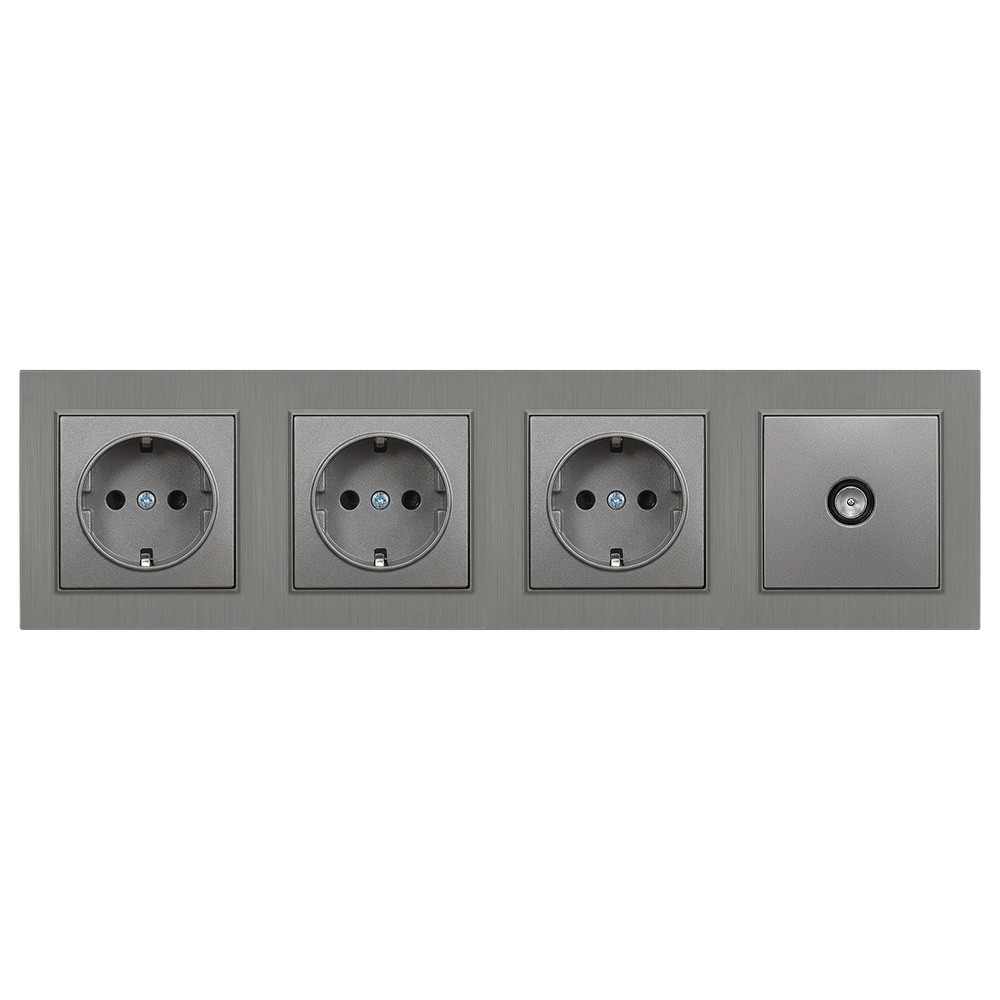 Nova IV három dugalj TV csatlakozóval szürke szálcsiszolt kerettel
