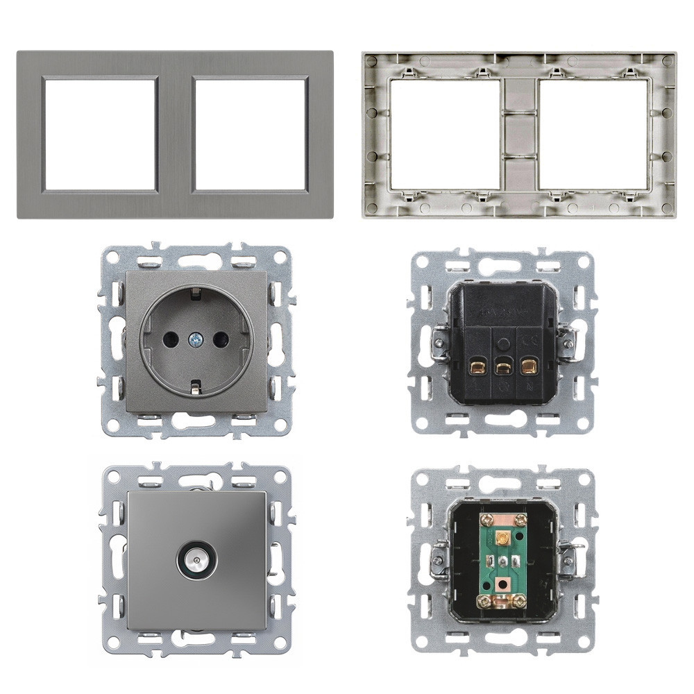 A termék két külön modulként (földelt dugalj és TV aljzat) kerül beépítésre, egy gyárilag szerelt, fehér színű, vízszintes elrendezésű Nova kettes keretbe. A lekerekített perem és homogén színvilág stílusos megjelenést kölcsönöz, amely zökkenőmentesen illeszkedik a modern lakó- és munkakörnyezetekbe.