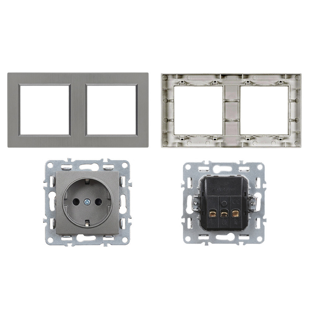 Nova kettős dugalj szürke szálcsiszolt kerettel