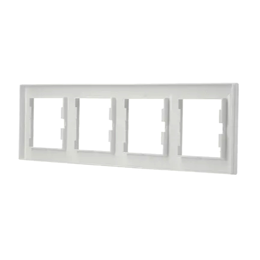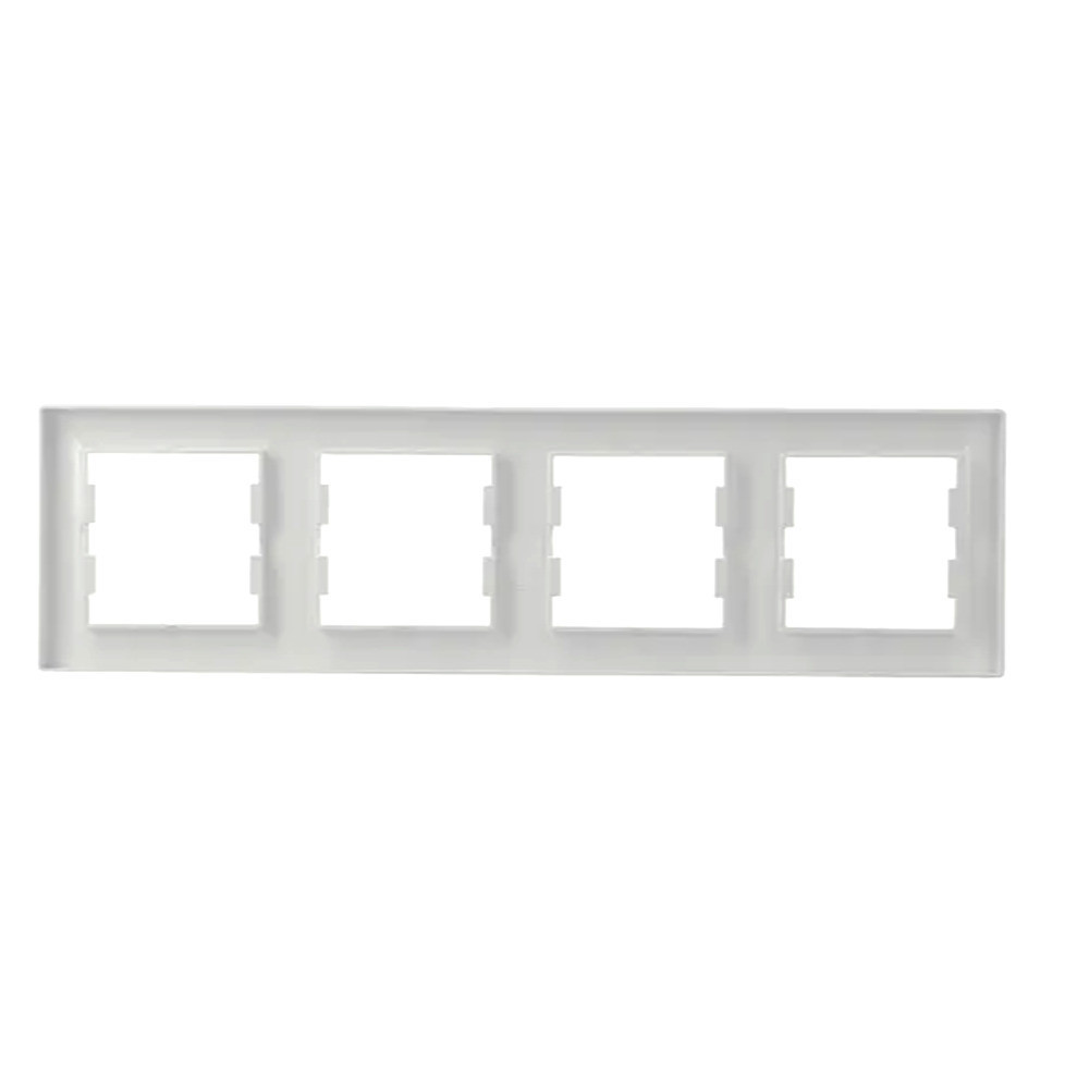 A Leziter Nova négyes keret négy modul (pl. kapcsoló vagy csatlakozóaljzat) esztétikus és stabil fali rögzítésére szolgál, kompatibilis a Nova rendszer keret nélküli szerelvényeivel. A 83 × 300 mm-es, vízszintes elrendezésű, lekerekített peremű, süllyesztett kivitel letisztult megjelenést biztosít, kizárólag száraz, pormentes beltéri környezetben alkalmazható.