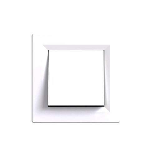 Ez a modell gyárilag tartalmazza a fehér Nova egyes keretet, így a kapcsoló telepítés után azonnal egységes, rendezett megjelenést nyújt. A lekerekített perem és a kompakt 83 × 83 mm-es méret modern, letisztult stílust képvisel, amely harmonizál a legtöbb beltéri enteriőrrel.