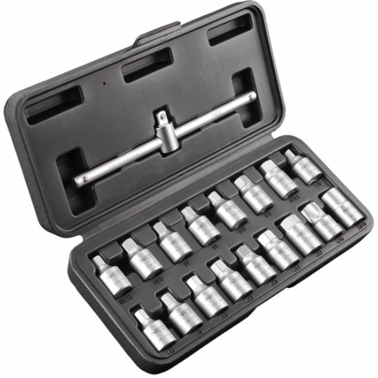 A NEO ?"-os olajleeresztő kulcs készlet 18 db kiváló minőségű, hosszú élettartamot garantáló króm-vanádium acélból készült elemből áll. A dugókulcsok (köztük HEX 8 mm-től 17 mm-ig, furatos Torx) olajleeresztésre szolgálnak a népszerű márkájú kocsik motorjaiból és differenciálműveiből, van köztük egy átmenő kulcs is ?"-os hajtókarral. A készlet szolid műanyag dobozba van csomagolva. A TÜV tanúsítvány bizonyítja a készlet kiváló minőségét. A NEO márka a professzionális igényeket is kielégíti.