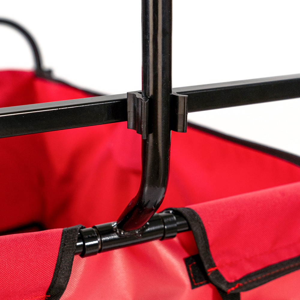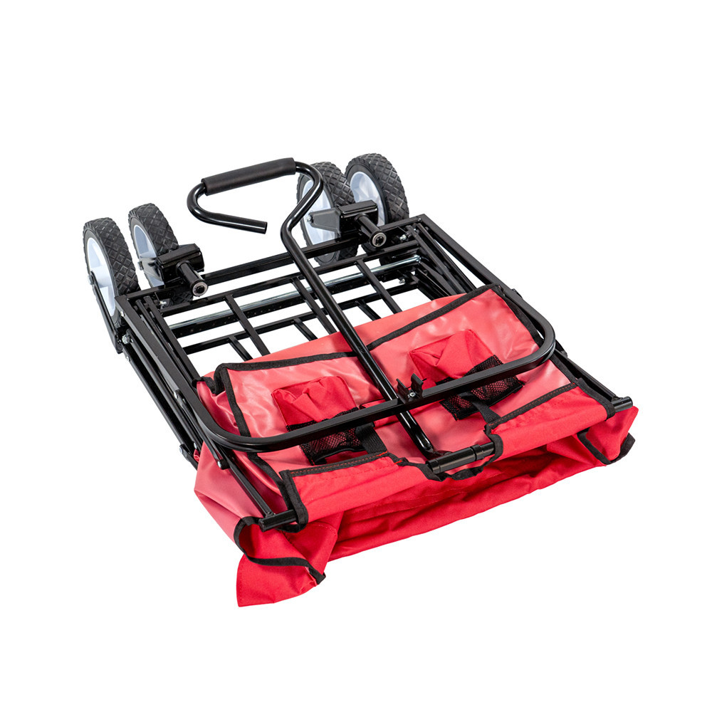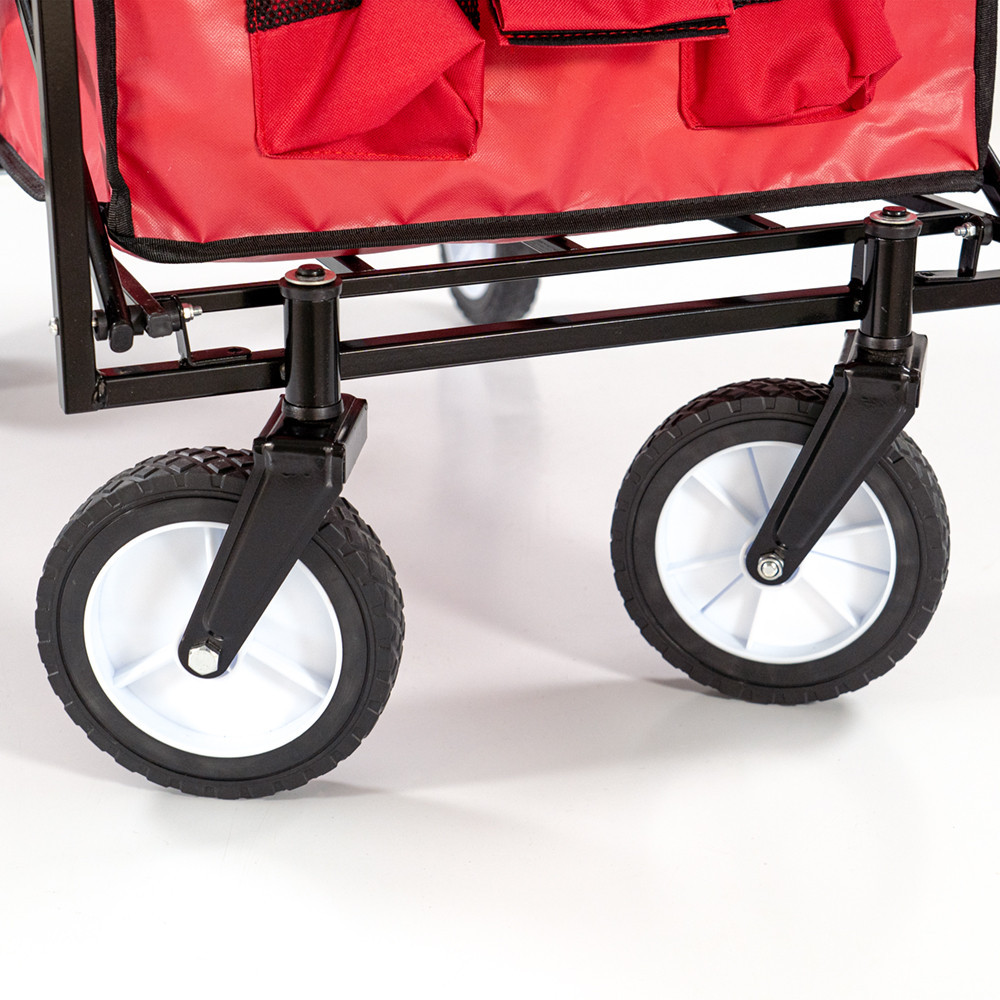 Anyag: A strandkocsi acél vázzal rendelkezik, ami rendkívül stabil és tartós. A kosara 600D poliészter szövetből készült, ami nemcsak erős és strapabíró, hanem könnyen tisztítható is. A élénk piros szín pedig figyelemfelkeltő megjelenést kölcsönöz a kocsinak.