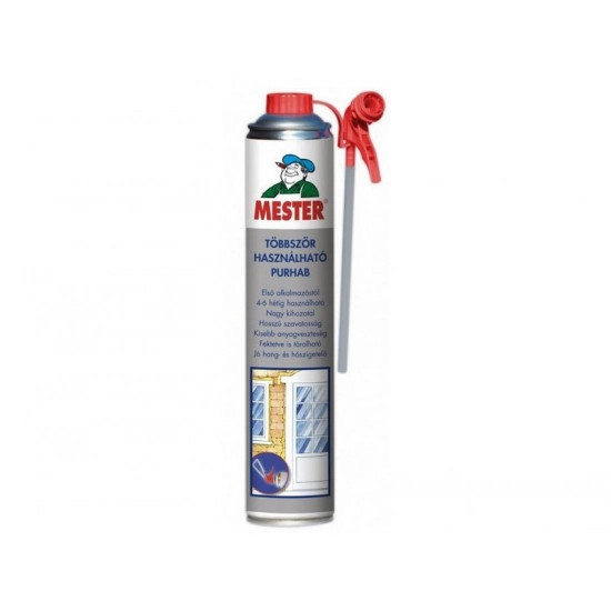 Speciális szeleppel ellátott, az első alkalmazástól számítva 4-6 héten belül többszöri felhasználásra alkalmas egykomponensű hab.