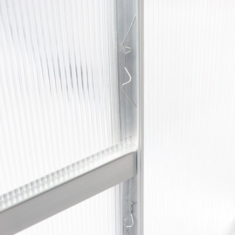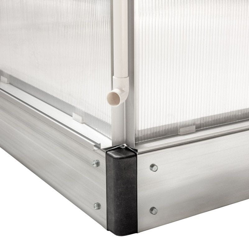 Az üvegház váza alumíniumból készült, ami minimálisra csökkenti a korrózió veszélyét. Az acél alapozás jelentősen hozzájárul a kerti üvegház szerkezetének stabilitásához és szilárdságához . Ennek a szerkezetnek további előnye a könnyű összeszerelés és a lehetőség, hogy bárhol elhelyezhető a kertben vagy a telken.