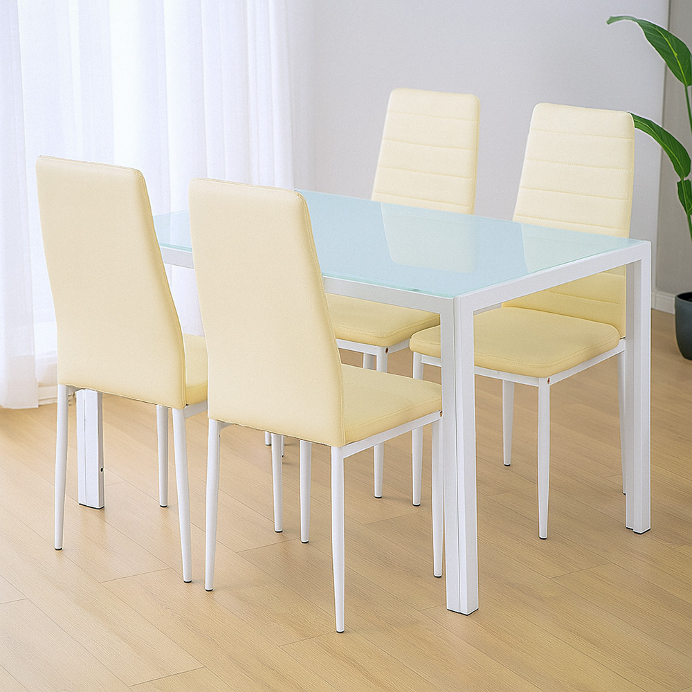 Portland 4+1 étkező garnitúra – Modern stílus bézs székekkel és edzett üvegasztallal