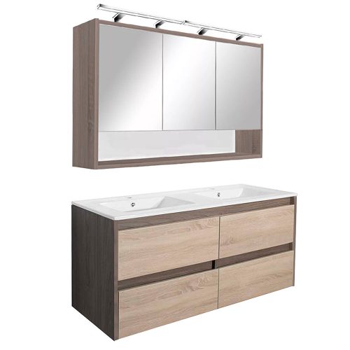 A csomag része a bútorra tökéletesen illeszkedő, fehér színű, dupla medencés kerámia mosdó is, amely két csaptelep számára kialakított hellyel rendelkezik. így nem kell külön keresni hozzá megfelelő mosdót. A csomag nem tartalmazza a lámpát, a csaptelepeket és a leeresztőt!