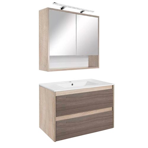 A csomag része a bútorra tökéletesen illeszkedő, rauna szil színű, mélymedencés kerámia mosdó is, amely egy csaptelep számára kialakított hellyel rendelkezik. így nem kell külön keresni hozzá megfelelő mosdót. A csomag nem tartalmazza a lámpát, a csaptelepet és a leeresztőt!