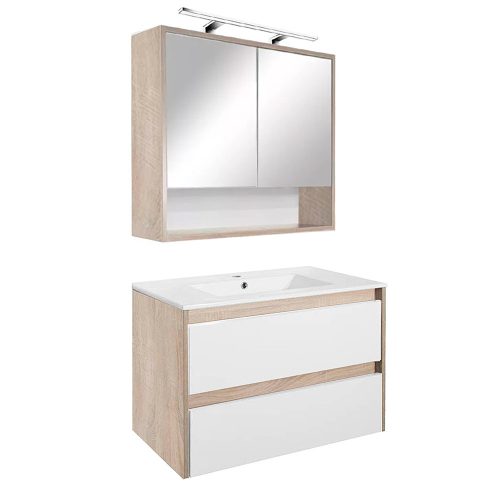 A csomag része a bútorra tökéletesen illeszkedő, fehér színű, mélymedencés kerámia mosdó is, amely egy csaptelep számára kialakított hellyel rendelkezik. így nem kell külön keresni hozzá megfelelő mosdót. A csomag nem tartalmazza a lámpát, a csaptelepet és a leeresztőt!